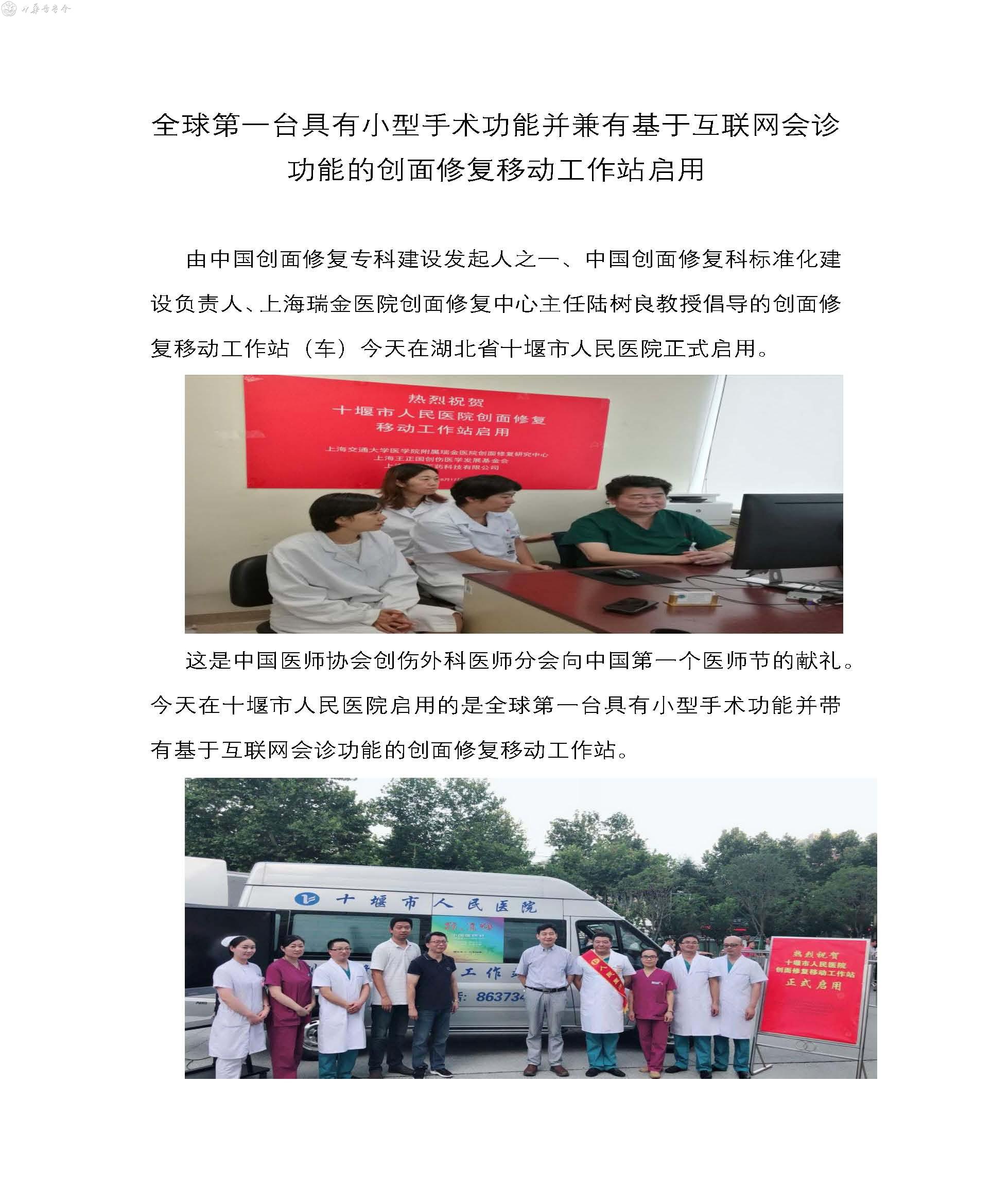全球第一台具有小型手术功能并兼基于互联网会诊 功能的创面修复移动工作站启