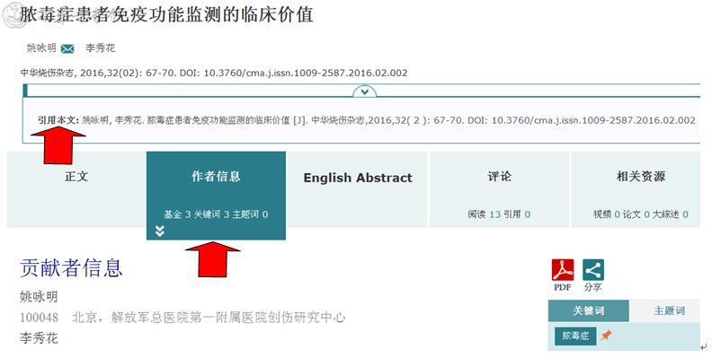 通过电脑查阅时,可直接在题名信息下,看到“引用本文”的具体标注,查看本文作为参考文献的中文著录格式。针对有英文题名信息的文章,请点击页面中“作者信息”,于“作者声明”后可同时看到本文作为参考文献的中英文著录格式。