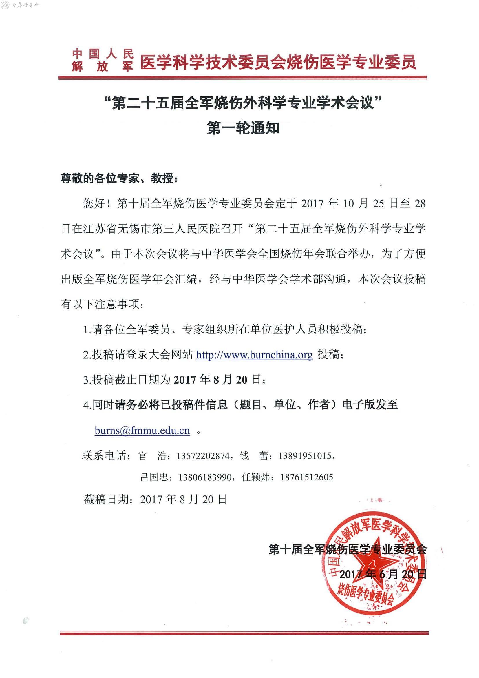 第二十五届全军烧伤外科学专业学术会议